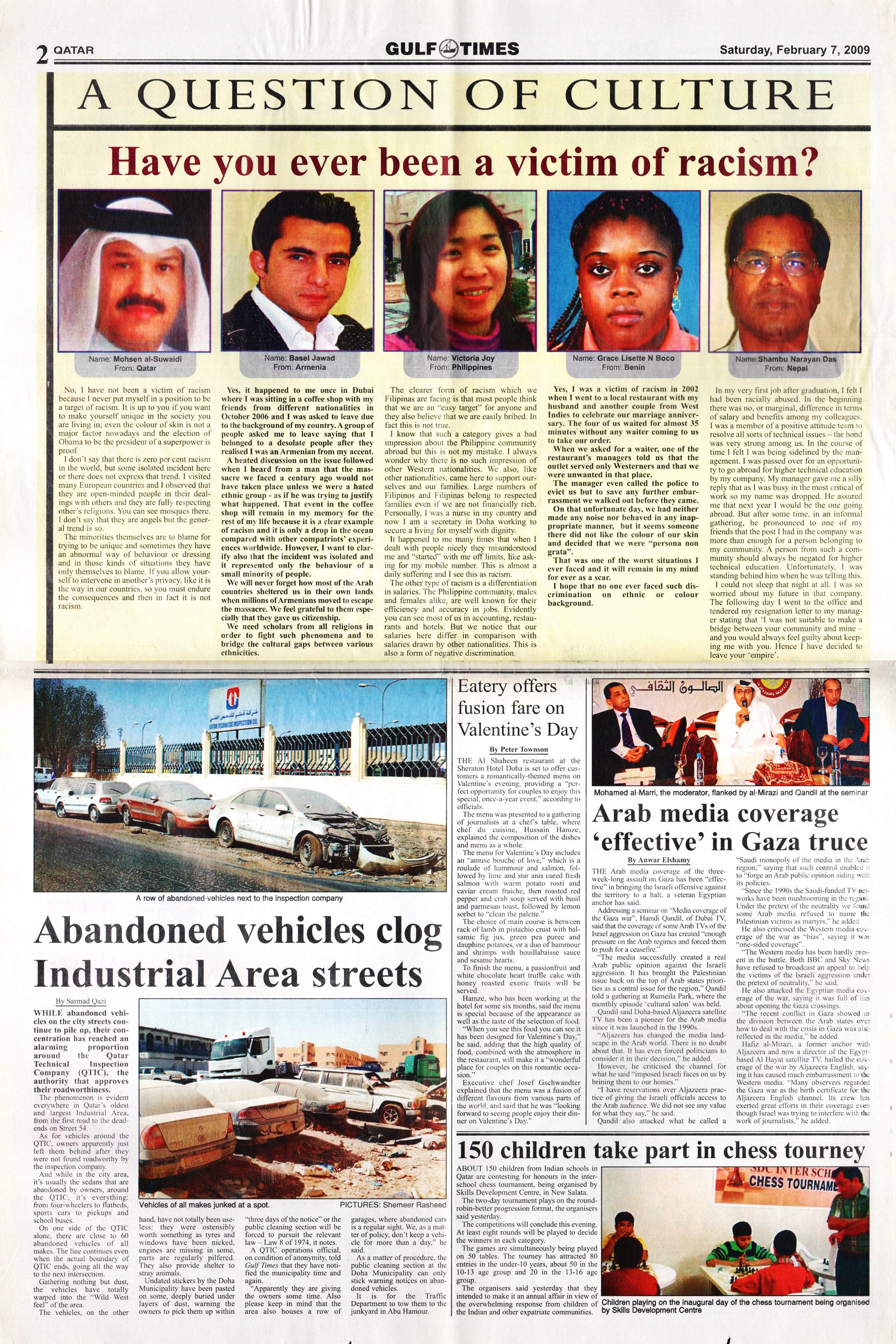 Original Gulf Times clipping: Abandoned vehicles clog Industrial Area streets