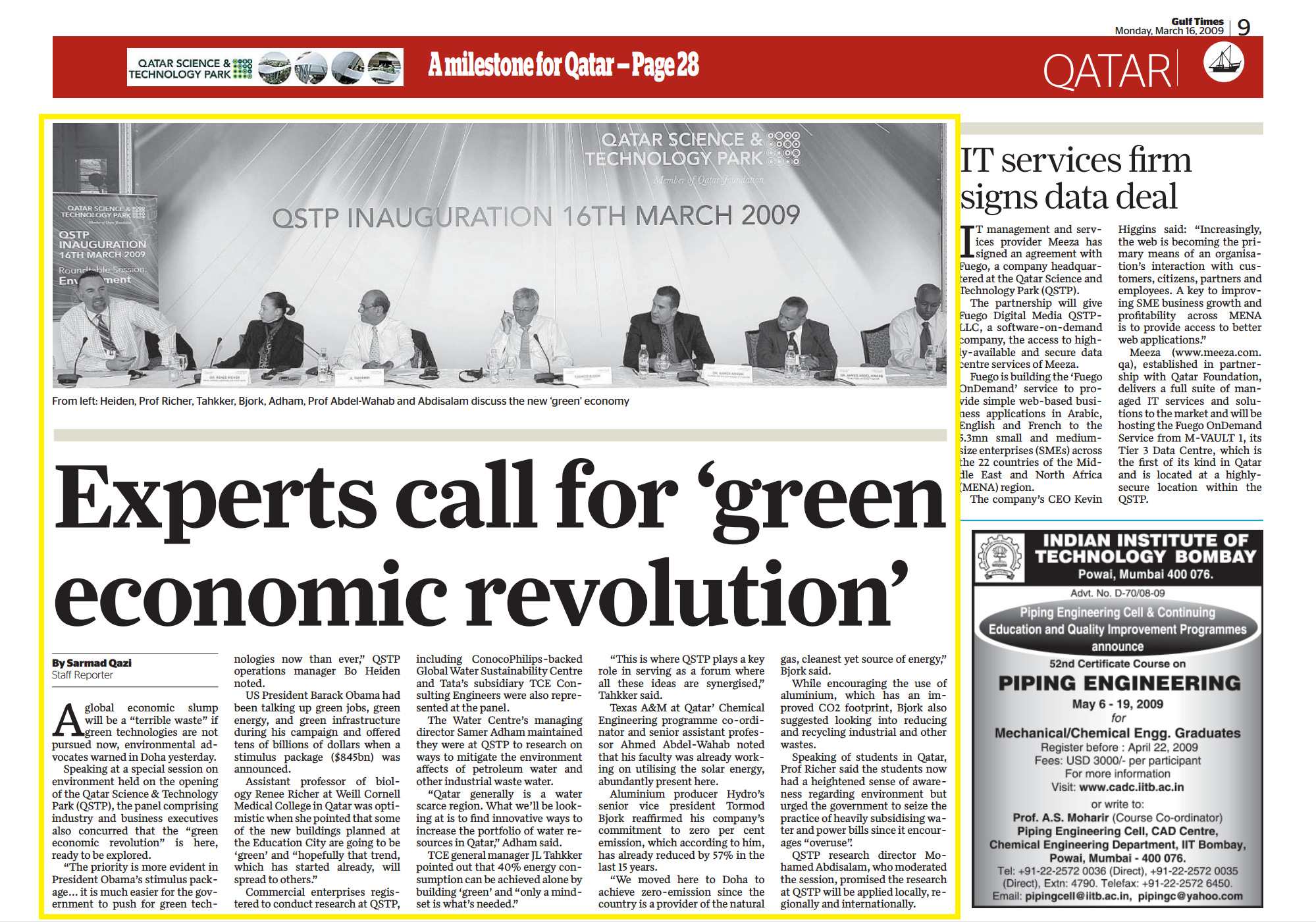 Original Gulf Times clipping: Experts call for 'green economic revolution'