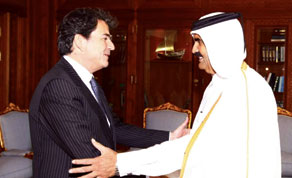 Photocaption: HH the Emir Sheikh Hamad bin Khalifa al-Thani receiving the French Minister of Trade, Pierre Lellouche, at the Emiri Diwan yesterday. Separately HH the Heir Apparent Sheikh Tamim bin Hamad al-Thani also met Pierre Lellouche and his accompanying delegation at the Emiri Diwan yesterday