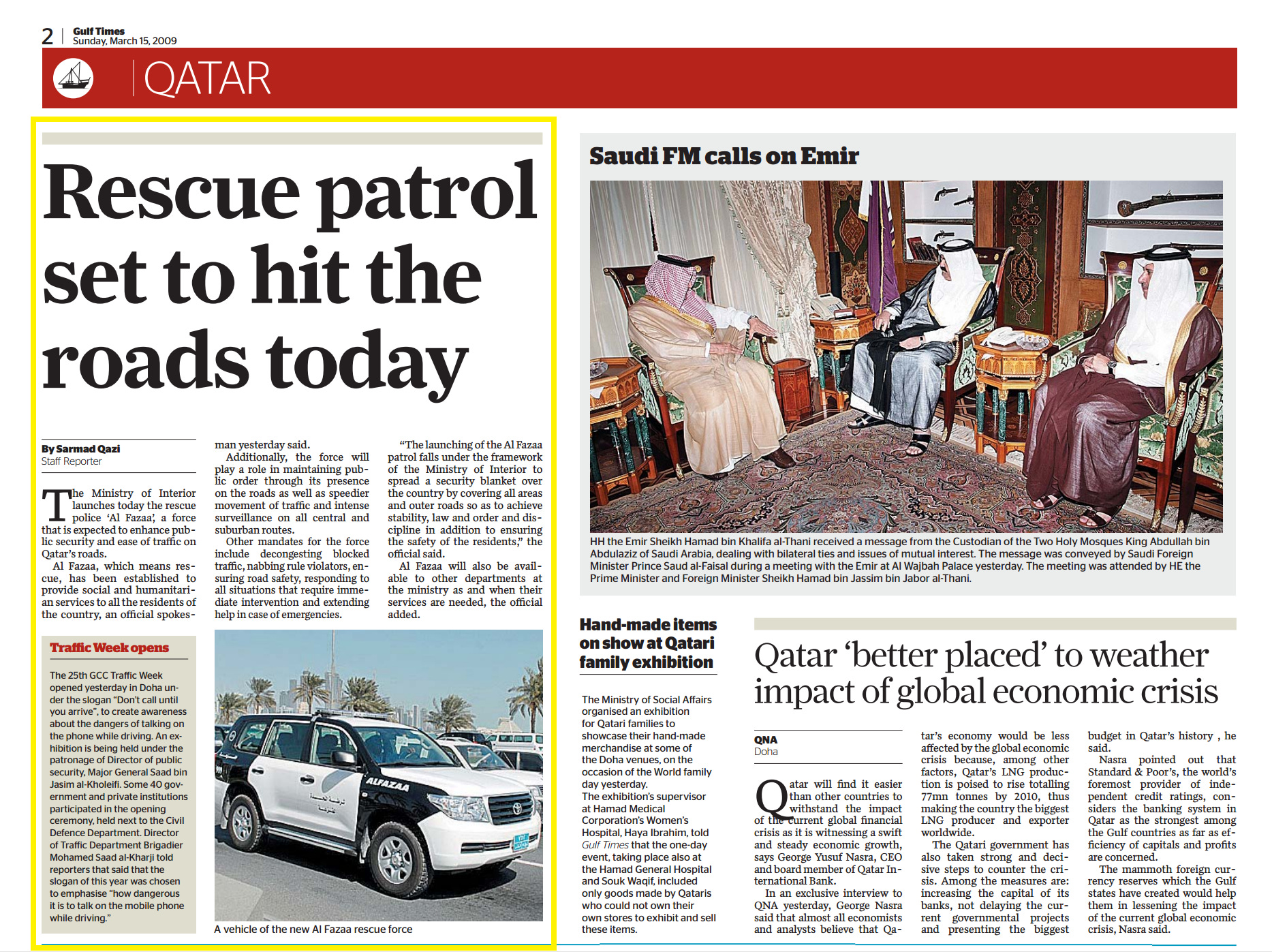 Original Gulf Times clipping: Rescue patrol set to hit the roads today