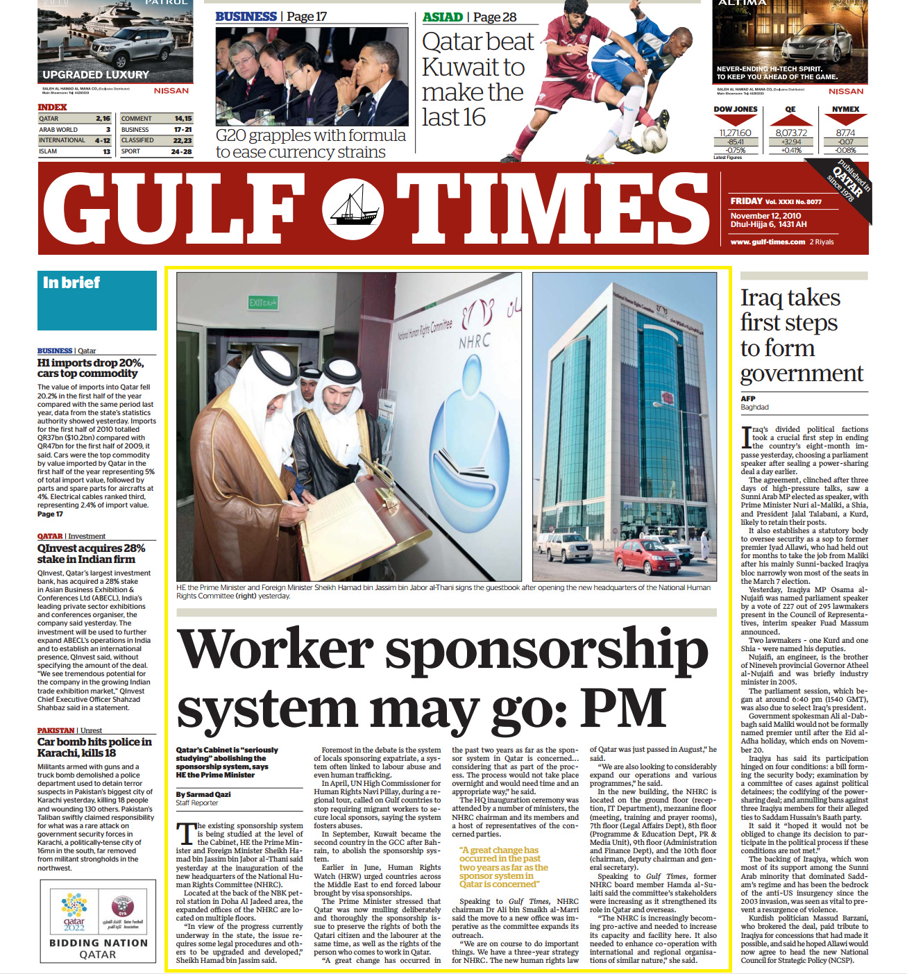 Original Gulf Times clipping: Worker sponsorship system may go, PM